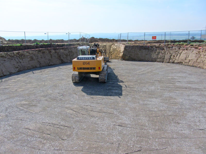 Die ersten Bilder entstanden am 21.9.2011, hier sieht man bereits den fertigen Aushub, die Vorbereitungs-Arbeiten für das Fundament sind in vollem Gange.