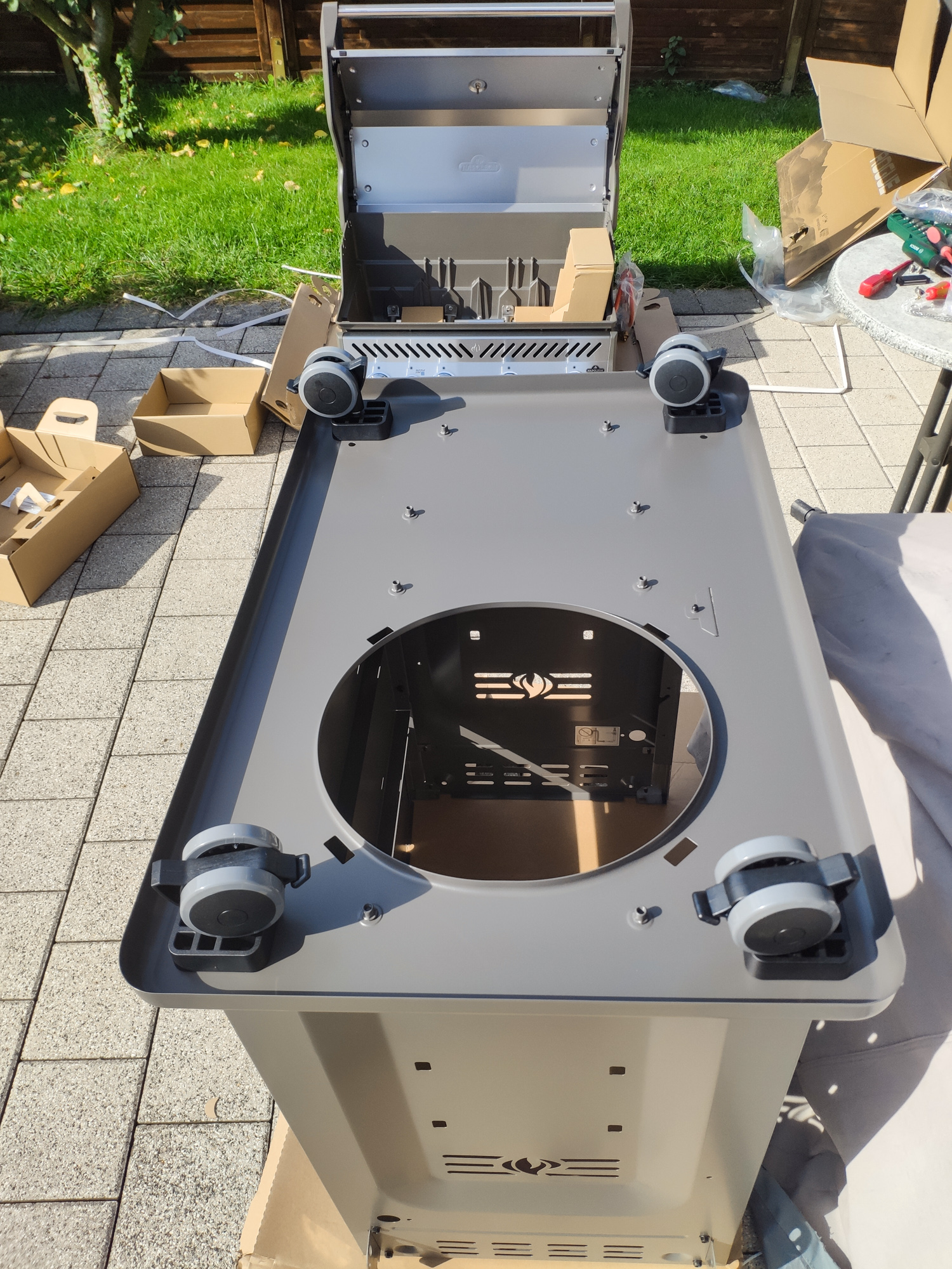Jetzt noch passend aufstellen, Fernseher und Receiver drauf, fertig.