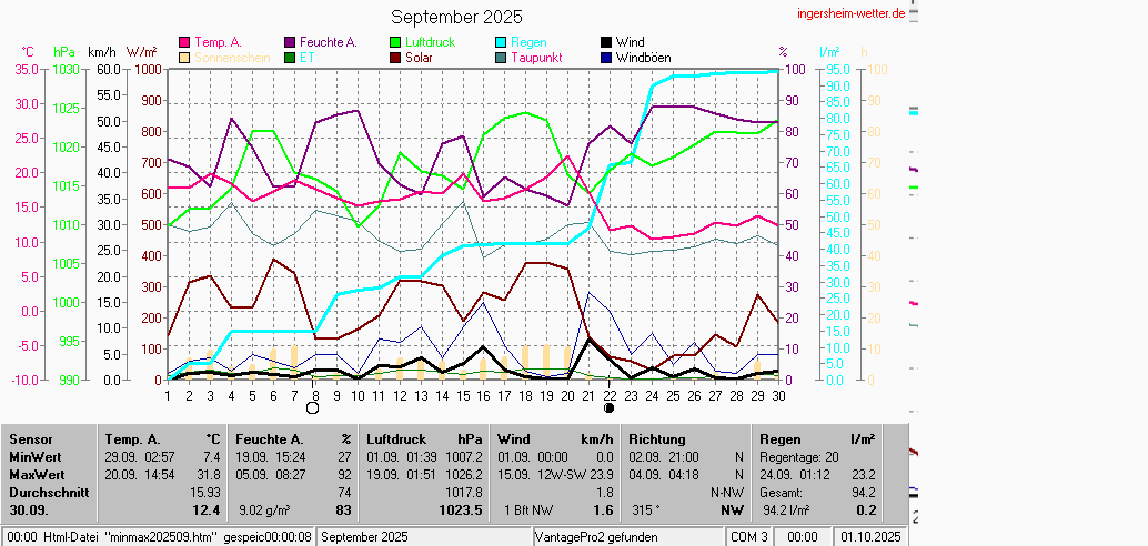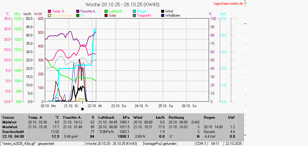 Die dargestellten Werte repräsentieren die Daten der letzten 24 Stunden! Der Luftdruck ist auf Meereshöhe bezogen! |